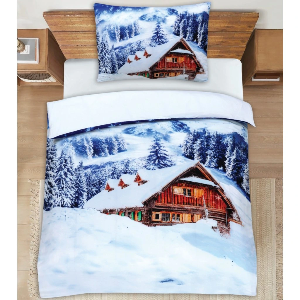 3D povlečení Polycotton Sněžná Chaloupka 200x140cm+90x70cm TiaHome